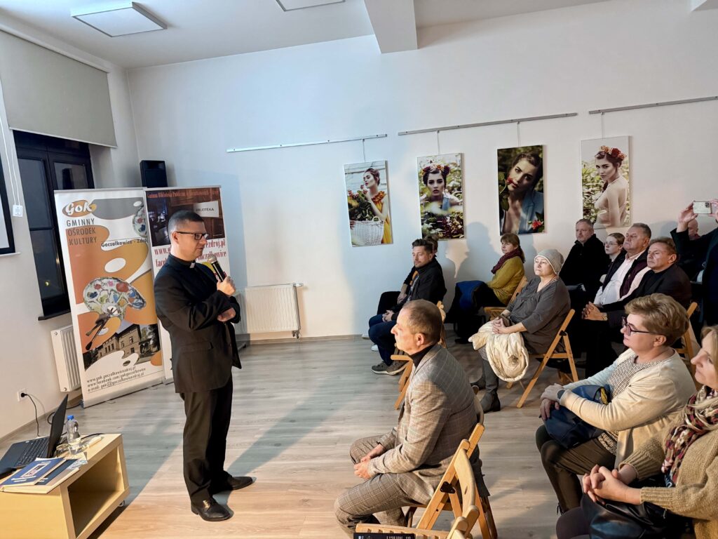W sali Gminnego Ośrodka Kultury panowała atmosfera prawdziwego zainteresowania i życzliwości. Dr Robert Garstka, przedstawiając fotografie kapliczek i krzyży, snuł opowieści o ich fundatorach, intencjach, a także o tym, jak zmieniały się przez lata. Jego słowa miały w sobie lekkość spotkania z kronikarzem i głębię człowieka wrażliwego na sacrum.